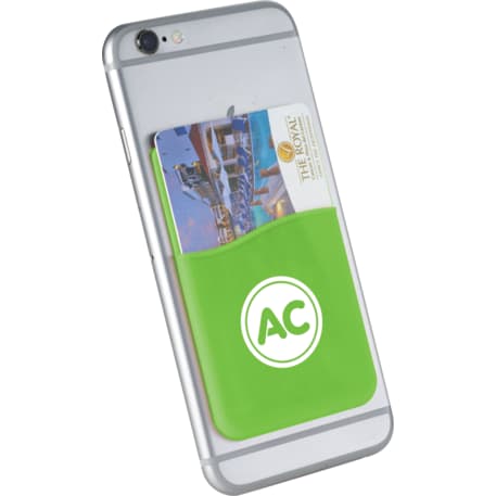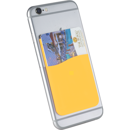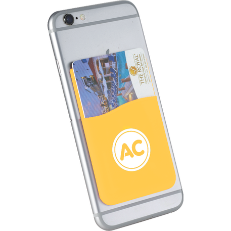 The Slim Silicone Card Wallet includes adhesive tape on the back that allows for easy application on most flat-backed smartphones. It can easily hold one credit card/identification card/ room key card/ five business cards or cash. Due to the nature of the item material, PMS matching is not available. Several different imprint colors are available: PMS 021 Orange, PMS 289 Navy Blue, PMS Reflex Blue,PMS 300 Royal Blue,PMS 116 Lemon Yellow,PMS 123 Bright Yellow,PMS 357 Forest Green,PMS 354 Kelley Green,PMS 210 Pink,PMS 186 Red,PMS 202 Maroon,PMS 222 Burgundy,PMS 430 Gray,PMS 877 Silver.