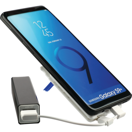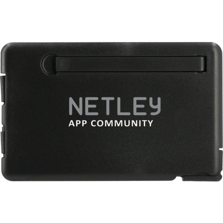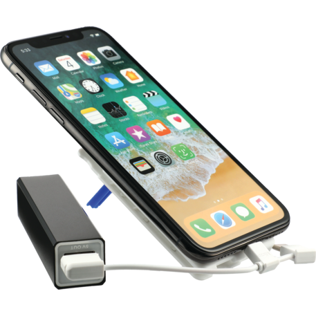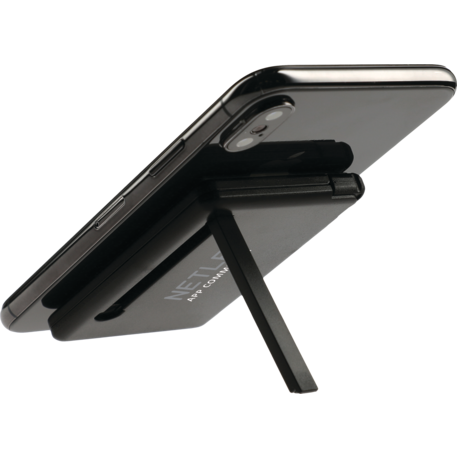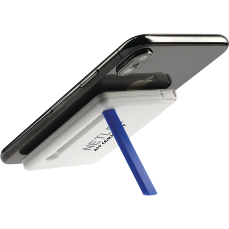 The Latch 3-in-1 Cable with Phone Stand has 3-in-1 cable inserted into the slot. Sticks on the back side of a phone and pull out the stick to be used a phone stand function. The cable contains a USB A Tip, Type C Tip, and a 2-in-1 dual compatible tip for both Apple® iOS and Android Devices with 2A current. Not compatible with iPad Pro.