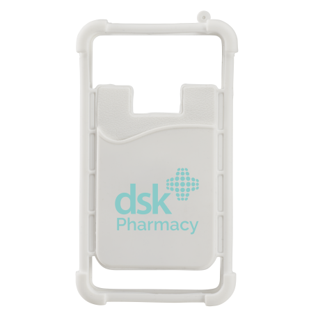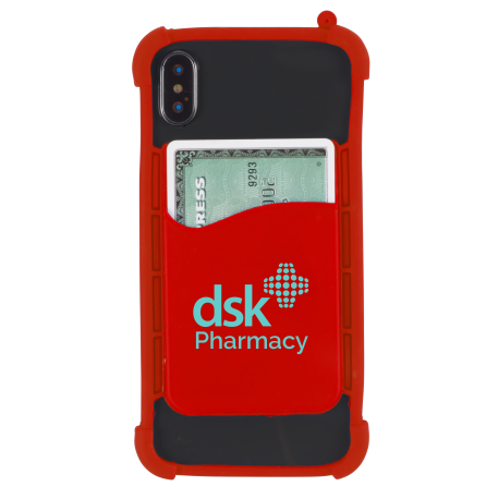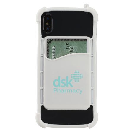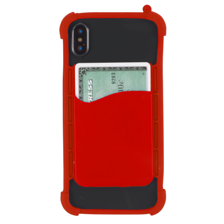 Multiple function silicone phone wrap with Card holder. It conveniently wraps around the corners fit to most of phone sizes, The card wallet on back can hold up to 2 credit cards/Room key card/ 5 business cards or cash.