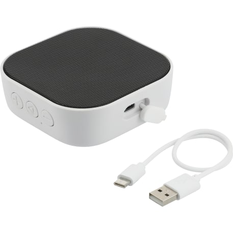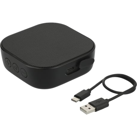 The Whammo 2.0 Bluetooth® Speaker packs quality sound into a compact size. The battery lasts up to four hours at max volume, and it can be fully charged in three hours. The built-in microphone and music controls lets you make or receive calls while controlling the audio. The Bluetooth® working range is 10 meters (33 feet). Includes Type-C charging cable. Three-watt speaker output. Giftbox and manual are made from FSC®-certified material.