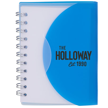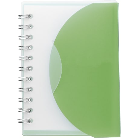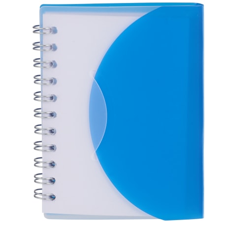 The 3" x 4.5" Post Spiral Notebook is a junior-sized notebook that features a fold-over polypro cover and 60 blank white pages.