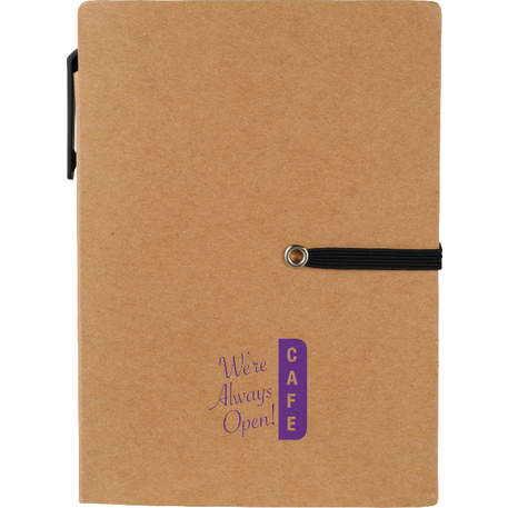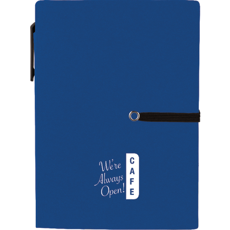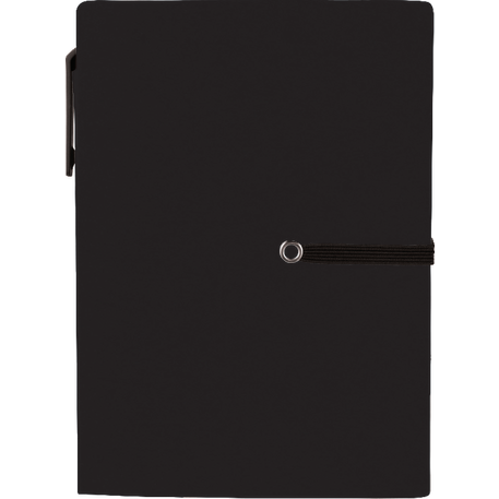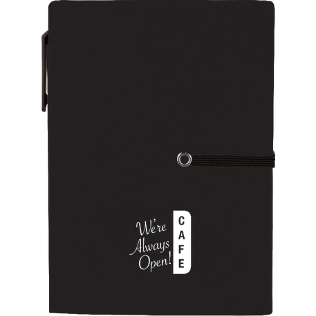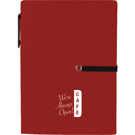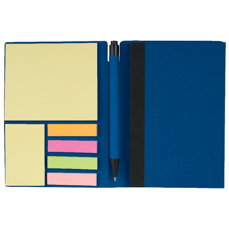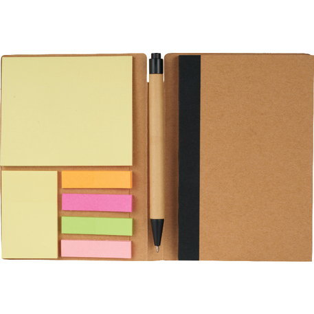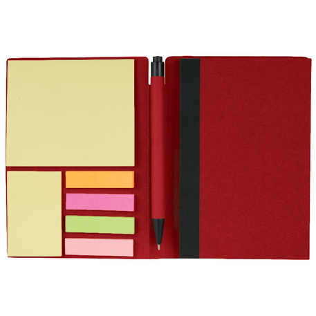 The 4" x 5.5" Stretch Notebook features 70 ruled pages. 25-sheets include a 3.5” by 3” sticky memo pad while another 25-sheets feature a 2” x 1.5” sticky memo pad. The sticky pads come in 5 assorted colors. The notebook also includes a cardboard ballpoint pen, however a pen imprint is not available.