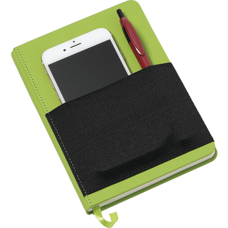PU, hard bound journal. Color matching ribbon page marker. Front elastic pocket to hold smartphone pocket, documents and pens. 80 sheets of cream lined pages.