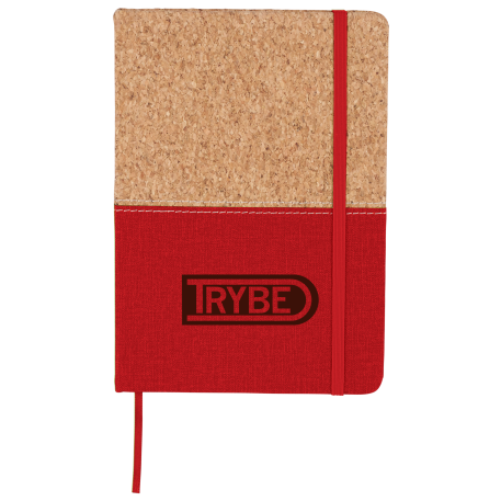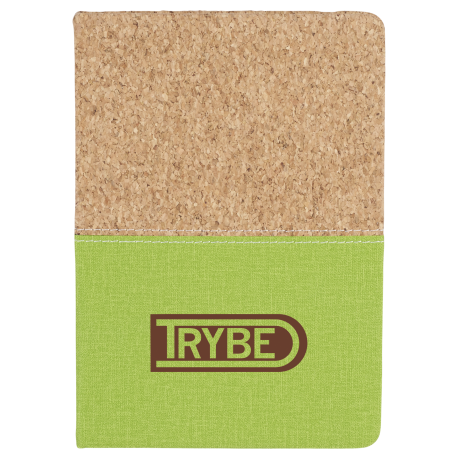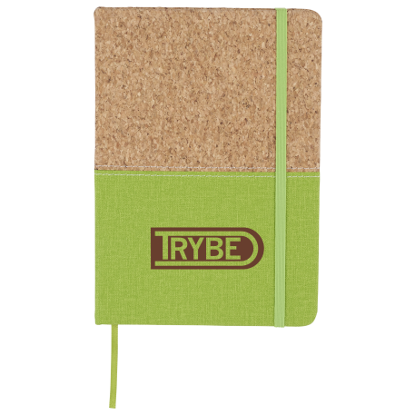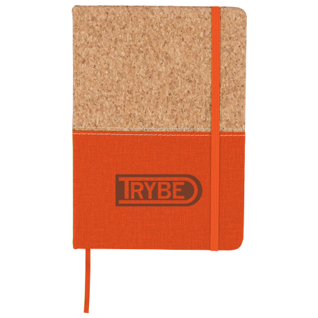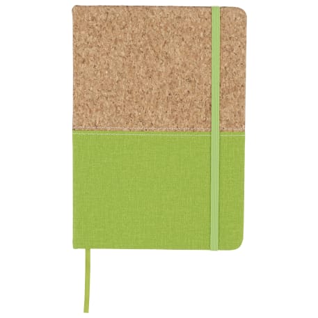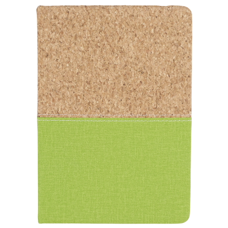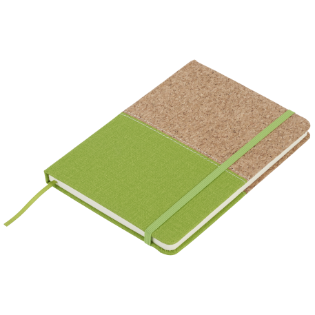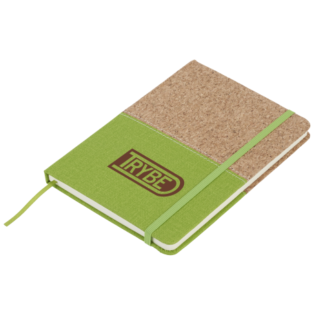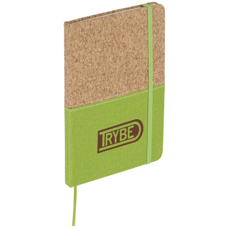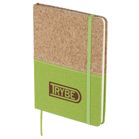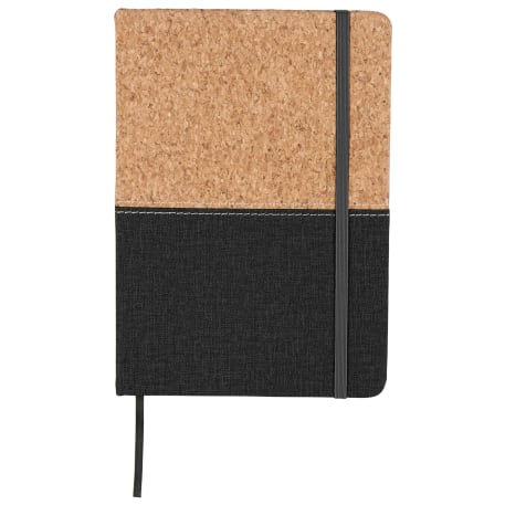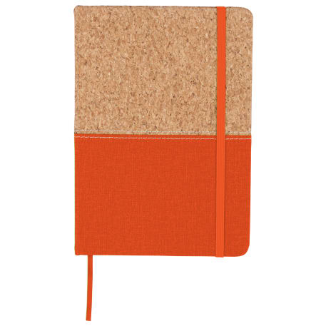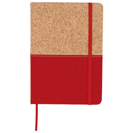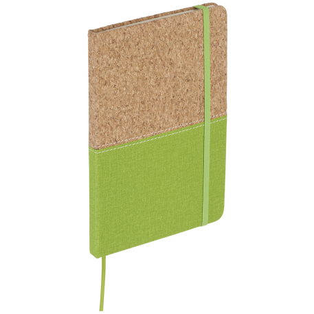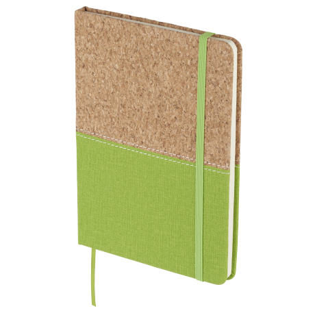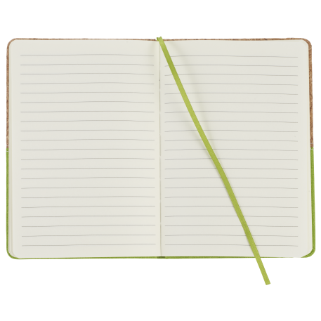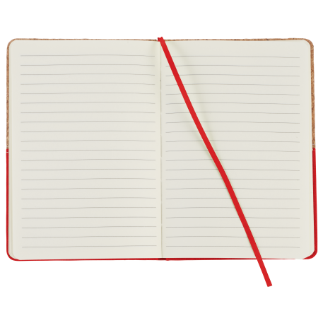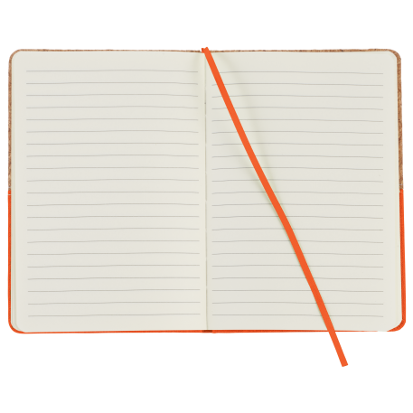 The 5" x 7" Venice Notebook is a hard cover bound notebook with 80 sheets of cream lined paper. Features a cork like top with PU bottom. Color matching elastic closure and ribbon page marker.