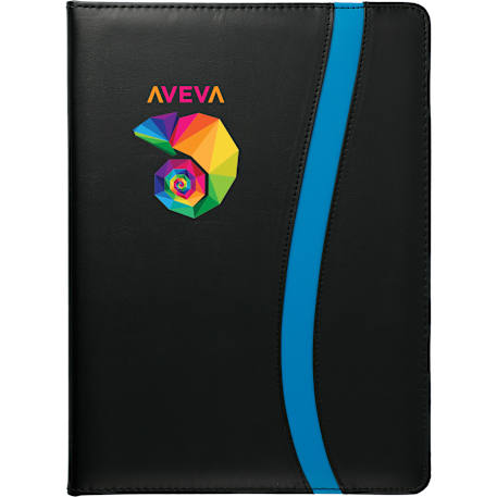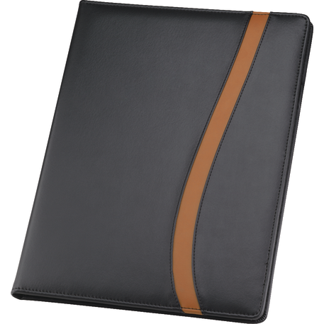 The Session Padfolio includes a refillable, 30 ruled page 8.5” x 11.5” notepad. With an inside file pocket, card slots and a pen loop. A pen is not included.