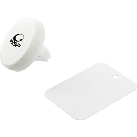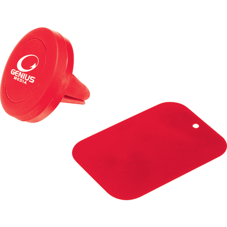 The Magnetic Phone Mount is a magnet phone holder that easily and securely holds your phone in a car. The mount has 4 built-in magnets and clip s to the air vent. Stick the metal plate to the back side of your phone via the included adhesive to make your phone magnetically connect to the mount.
