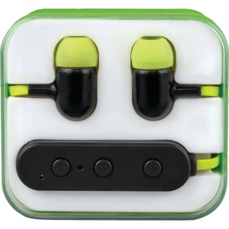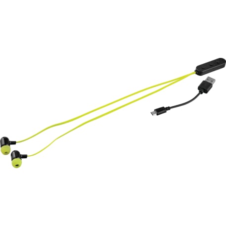 The Color Pop Bluetooth® Earbuds are lightweight and include an internal rechargeable battery that provides up to 3 hours of nonstop music at max volume. The earbuds also feature a built in music control and mic. A micro charging cable is included. It takes 1.5 hours to charge the earbuds to 100%.