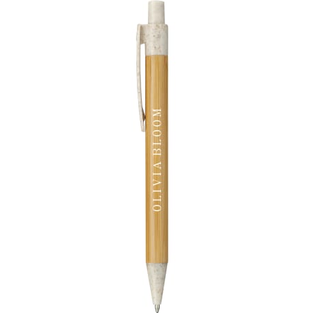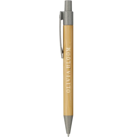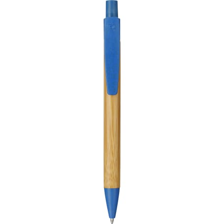 The Wheat Straw Ballpoint features a 100% bamboo barrel with 40% wheat straw accents. Click action mechanism. Black ink cartridge with 1.0mm pen tip. 800m writing length. Through a partnership with 1% For The Planet one percent of sales of this and all EcoSmart products will be donated to nonprofits dedicated to protecting the planet.