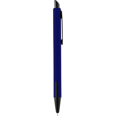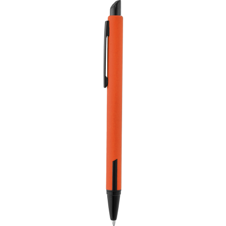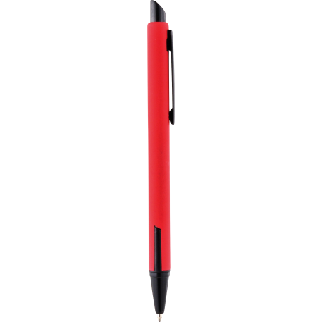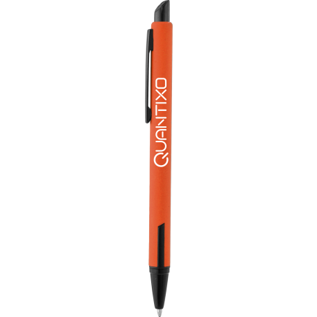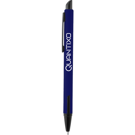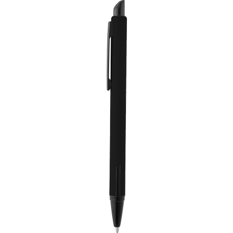 The Chatham Soft Touch Ballpoint Pen features a rubberized barrel with black accents. Retractable ballpoint with black ink cartridge. Laser finish is is shiny chrome silver imprint.