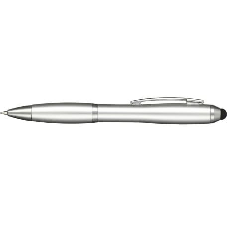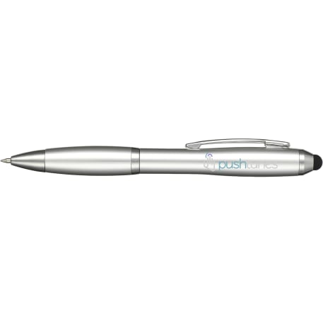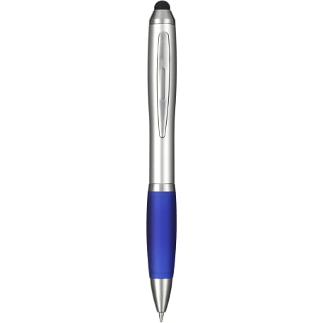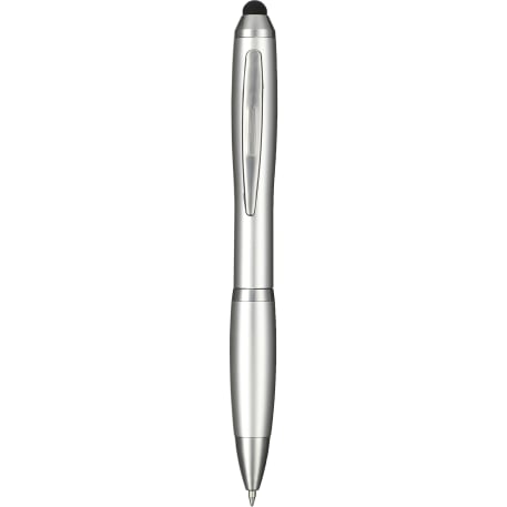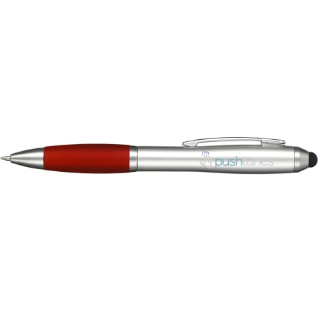 The Nash Gel Stylus Pen features a twist-action ballpoint pen with a soft rubber stylus for touchscreen devices. Includes ultra smooth, black gel ink cartridge, colorized rubber grip and 0.7mm pen tip.
