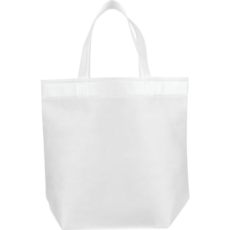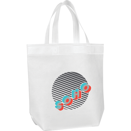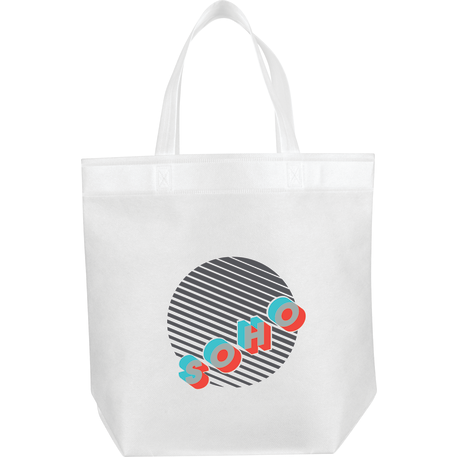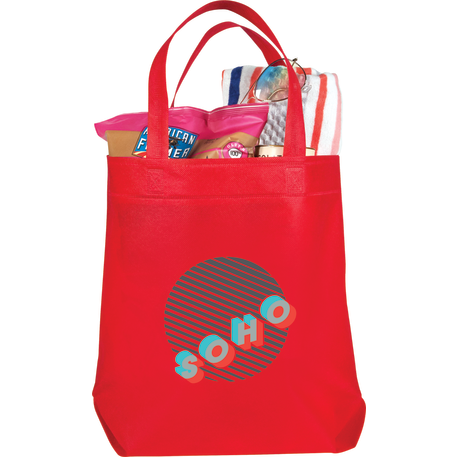 Large open main compartment. Heat-sealed construction. Reusable and a great alternative to plastic bags. 10" handle drop. Polypropylene is recyclable with #5 plastics please check with your local municipalities for specific rules and regulations.