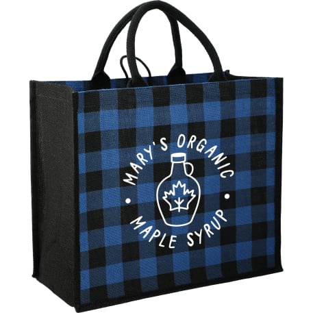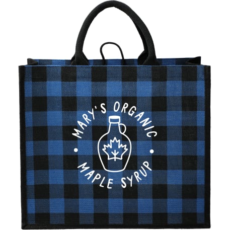 The Buffalo Plaid Printed Jute Tote is perfect for any season. This jute tote features an on trend buffalo plaid print and an open main compartment.