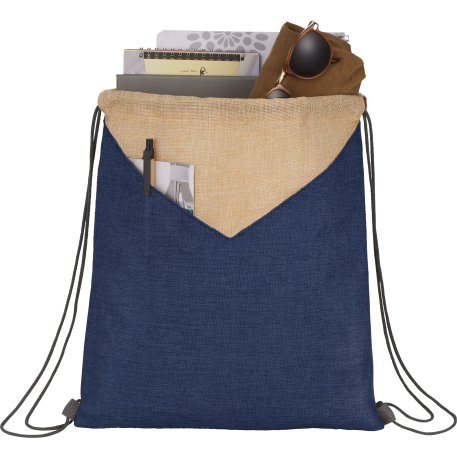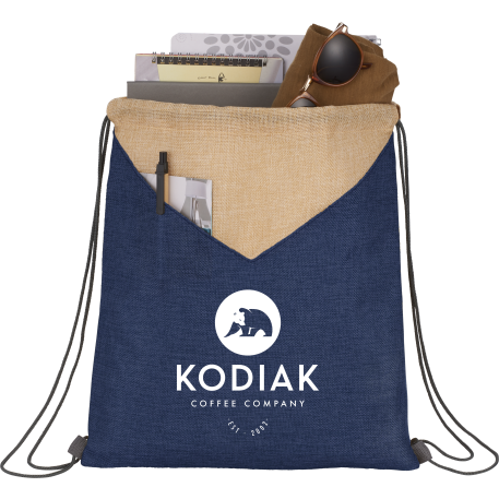 The Kai Drawstring Bag is made from soft poly-weave material with a modern look. This bag features a drawstring closure and a front slash pocket