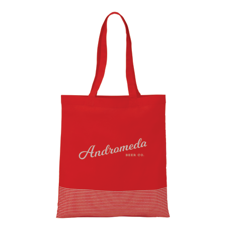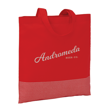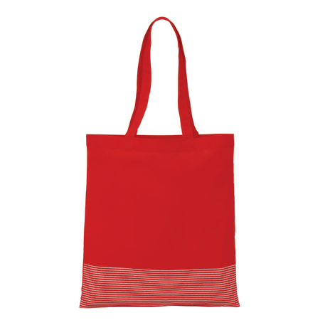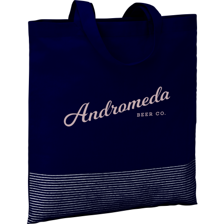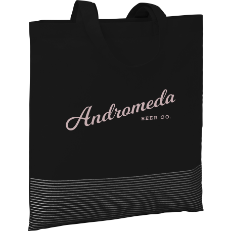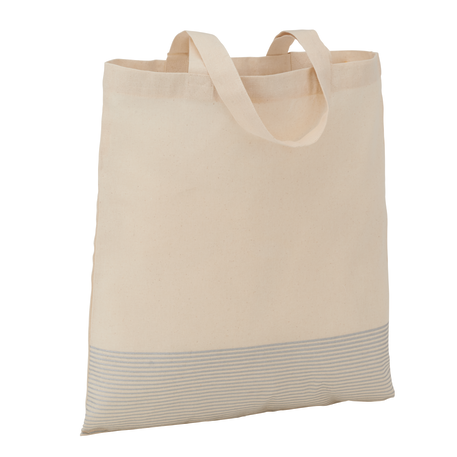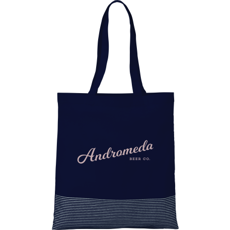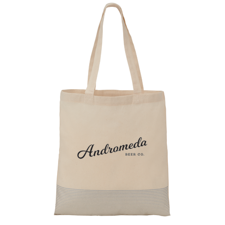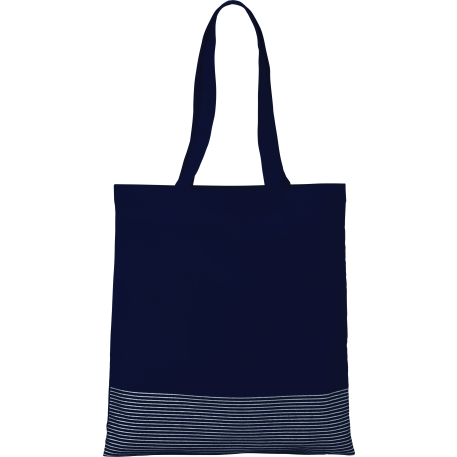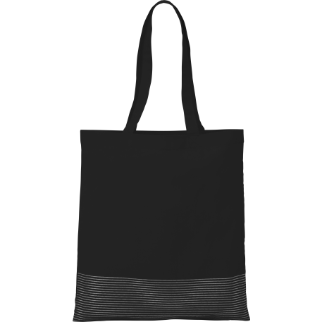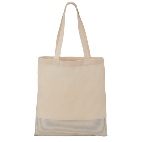 The Silver Line Cotton Convention Tote features silver accents and an open main compartment.