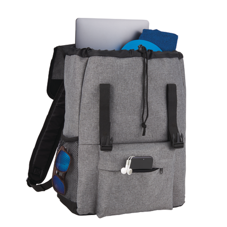 The Blaze 15” Computer Rucksack includes a large main compartment with drawstring closure and a 15” laptop sleeve. Added features like adjustable plastic buckles, zippered front pocket, webbing top grab handle and adjustable backpack straps give this rucksack an instant upgrade. Disclaimer: There may be minor variations in color of the actual product due to the nature of the fabric dyes, weaves and printing.