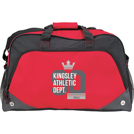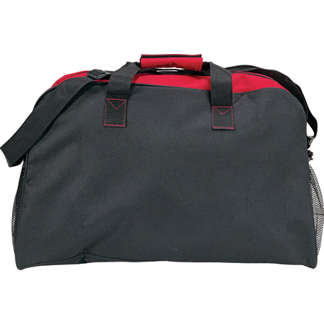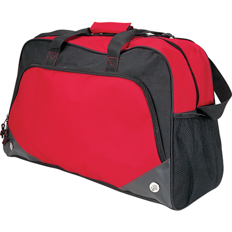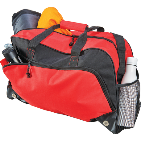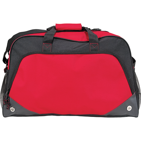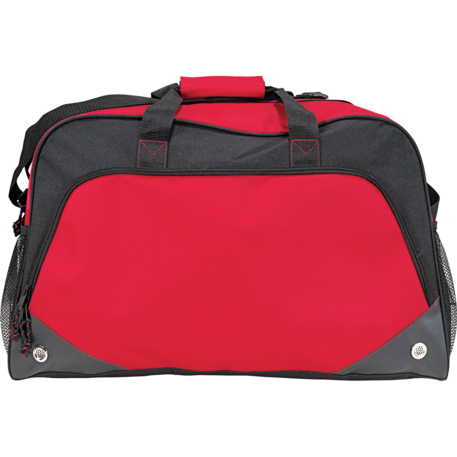 The Voyage 22” Sport Duffel features a roomy zippered, vented main compartment. The two side mesh pockets and front zippered pocket provide extra storage for all your accessories. This sport duffel offers a large front decoration area so everyone will see your brand.