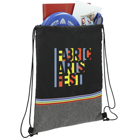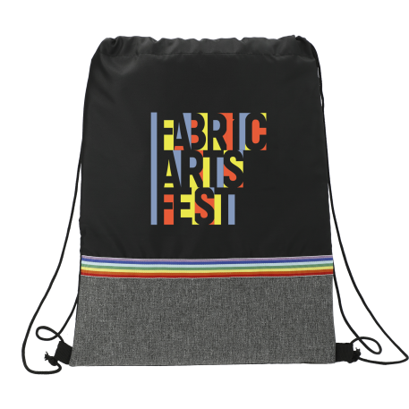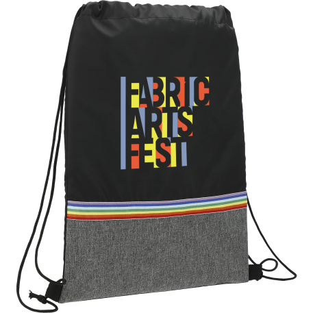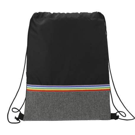 The Rainbow RPET Drawstring Bag features a pop of rainbow colors and graphite color-blocking. This bag is manufactured from 100% recycled 210d polyester, made from water bottles.Through a partnership with 1% For The Planet one percent of sales of this and all EcoSmart products will be donated to nonprofits dedicated to protecting the planet.