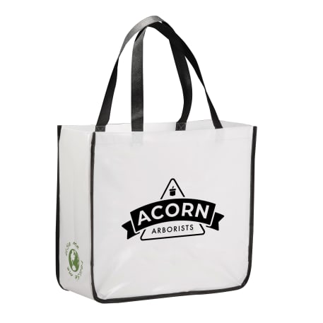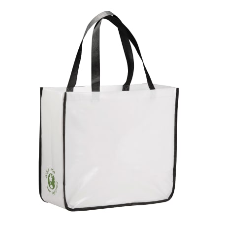 The Gloss Laminated Non-Woven Shopper Tote features an open main compartment to carry your essential items. The laminated material is water-resistant and easily wipes clean and includes reinforced 10"" drop handles made of durable polypropylene. This tote makes a perfect, reusable alternative to plastic bags. This tote was previously Leed's 2160-05, Large Laminated Non-Woven Shopper Tote.