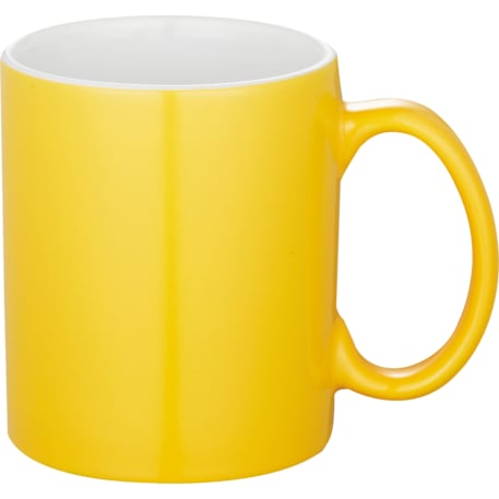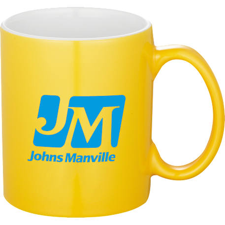The Bounty Spirit 11oz Ceramic Mug features a C-handle classic design with white interior accent. See General Information page for special ceramic item handling charge. Hand wash only and follow any included care guidelines.