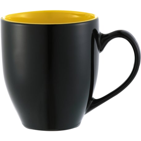 The Zapata 15oz Electric Mug is a large handle mug with a stylish interior color accent. See General Information page for special ceramic item handling charge. Hand wash only and follow any included care guidelines. Microwave Safe