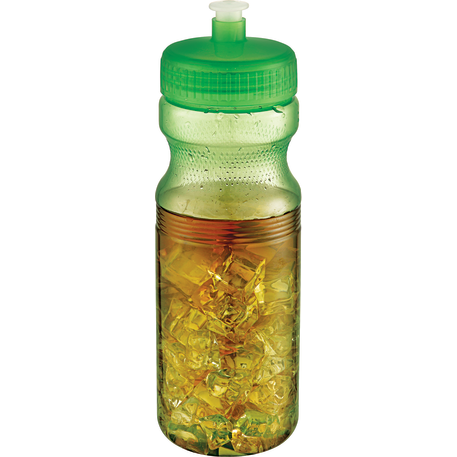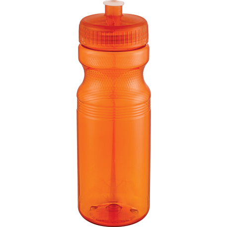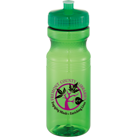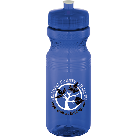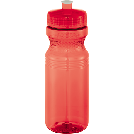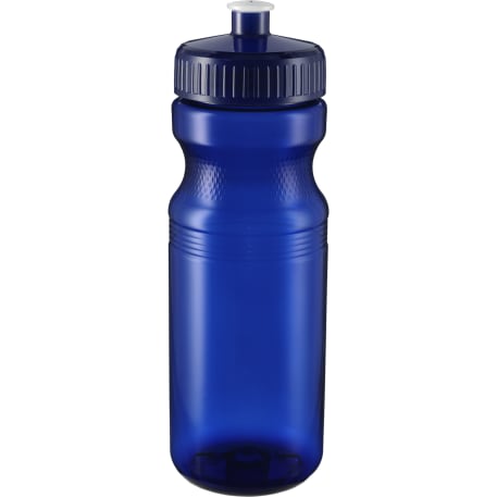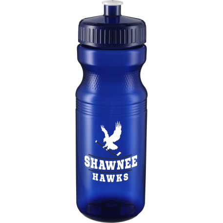 The Easy Squeezy Crystal 24-ounce Sports Bottle is a Made in USA, BPA-free sports bottle that's made with a polyethylene (PET) material that's phthalate-free, non-toxic and lead-free. It features a twist-on lid with push/pull drinking spout. Its translucent bottle color matches its lid color. Meets FDA Requirements. Bottles and lids shipped separately (lids not attached). Hand wash only and follow any included care guidelines.
