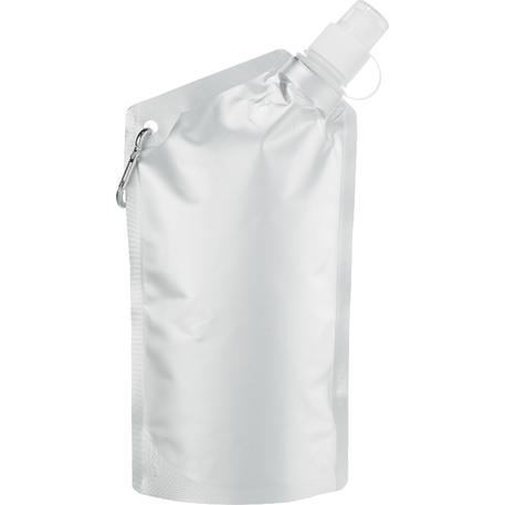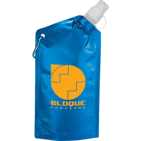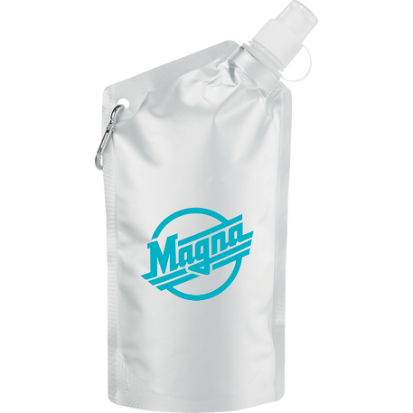 The Cabo 20oz Water Bag with Carabiner is a laminated drink bag with 5mm aluminum carabiner. It includes a twist-on, push/pull drink spout with a removable cap. A mini-carabiner is included, but not attached. US Patent #D639,185. Hand wash only and follow any included care guidelines.
