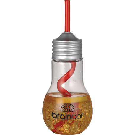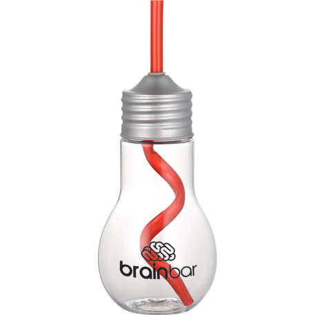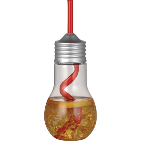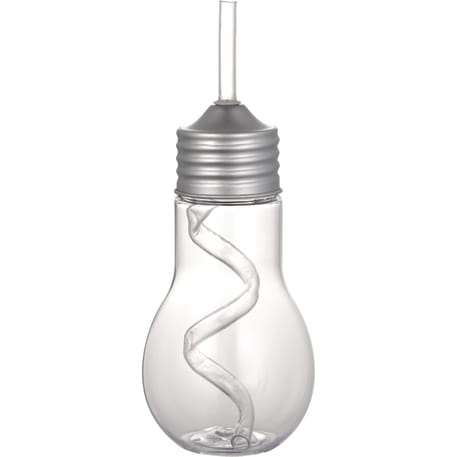 The Light Bulb 20oz Tumbler with Straw is a single-wall light bulb shaped beverage holder with a screw-on metal lid and matching straw. Straws are included, but not inserted. The size of the opening for the straw is about 0.196". Hand wash only and follow any included care guidelines.