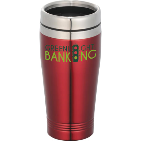 The Hollywood 16oz Tumbler features double-wall construction Stainless Steel Liner and stainless steel push-on lid with slide-lock drink opening. Multi-color imprint location run charges apply even if the artwork is the same on both sides. Hand wash only and follow any included care guidelines.