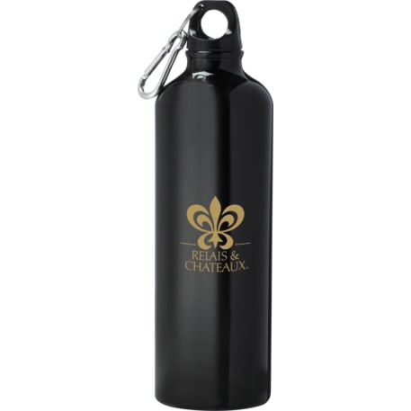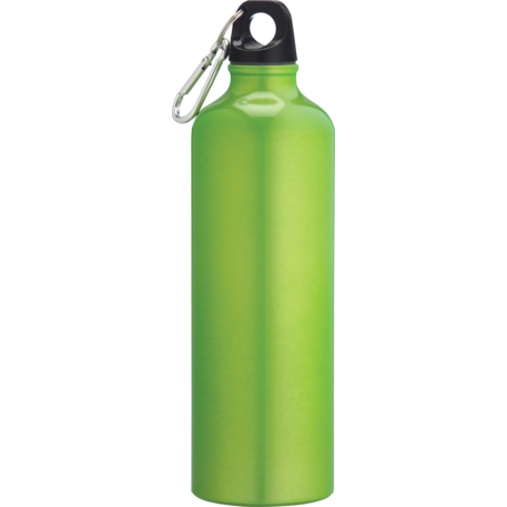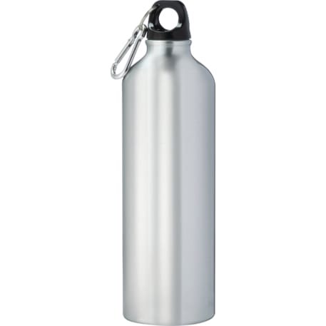 The Pacific 26oz Aluminum Sports Bottle is recyclable and features single-wall construction, a twist-on lid and includes a silver 5mm mini carabiner attached to the lid. Please note that multi-color imprint location run charges apply even if artwork is the same on both sides. Hand wash only and follow any included care guidelines. diameter of the mouth 1"