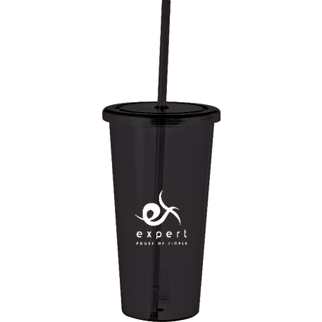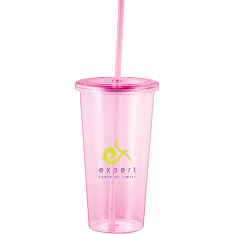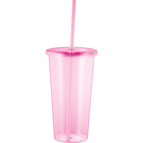 The Sizzle 24oz Tumbler is a single-wall tumbler with a twist-on lid and a matching straw. Straws are included, but not inserted. Hand wash only and follow any included care guidelines.