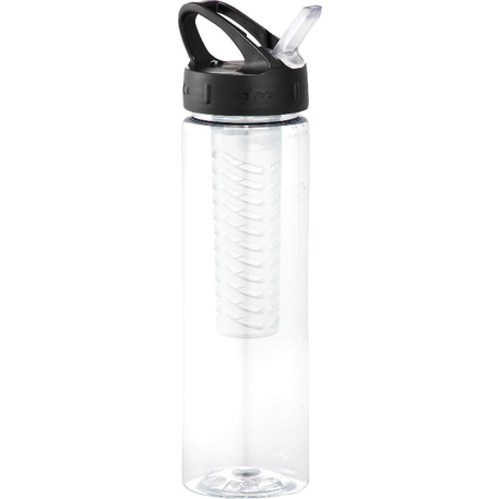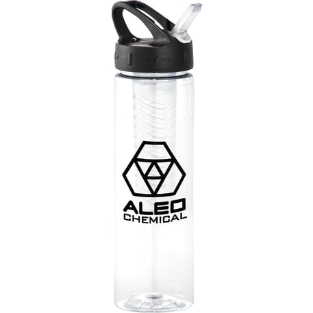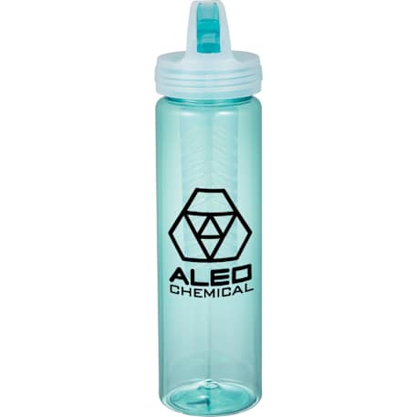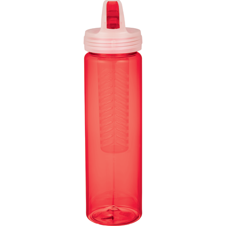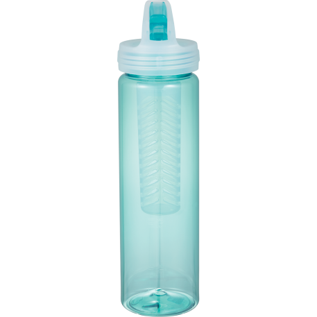 The Fruit Infuser 25-ounce Sports Bottle is a USA-made, BPA-free sports bottle with a twist-on lid and flip-top drinking spout. It also includes a twist-on fruit infuser lid to add flavor to your favorite drink and oz measurement markings are conveniently located right on the bottle. It's phthalate-free, non-toxic, lead-free and meets FDA Requirements. Hand wash only and follow any included care guidelines.