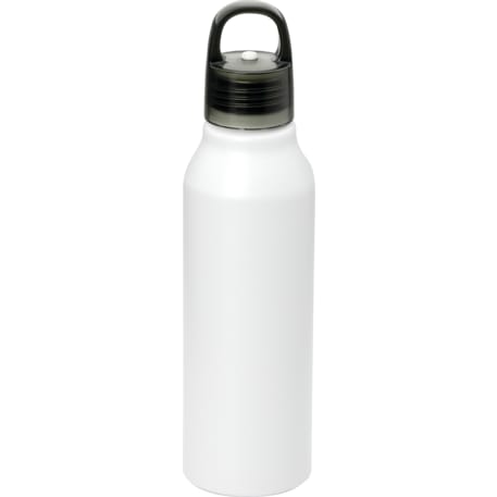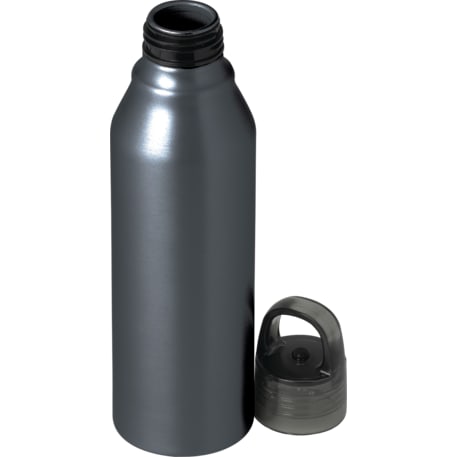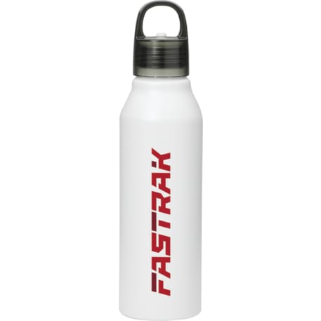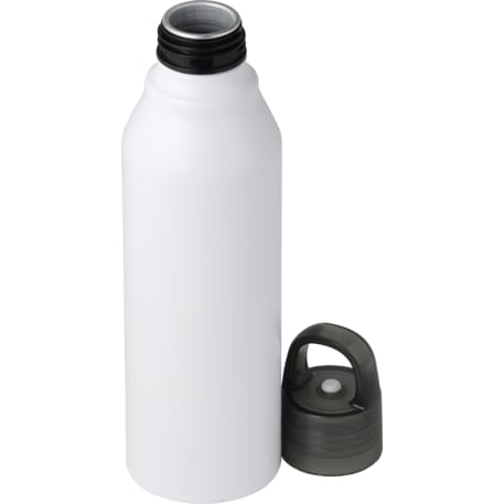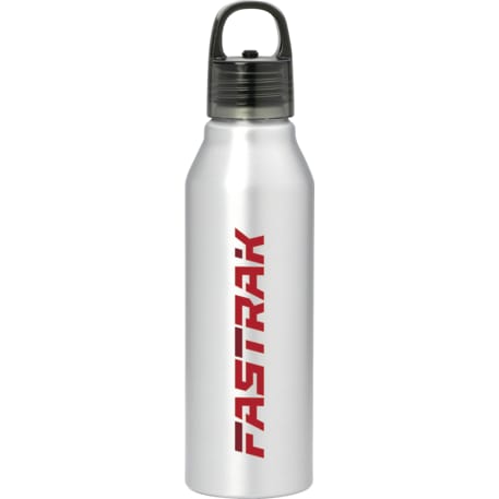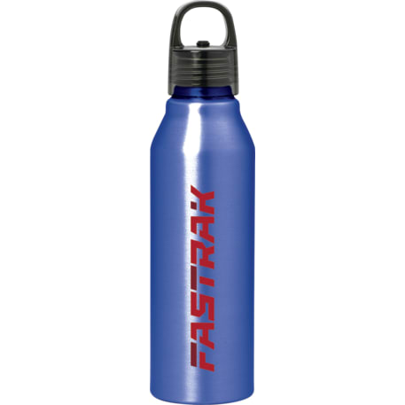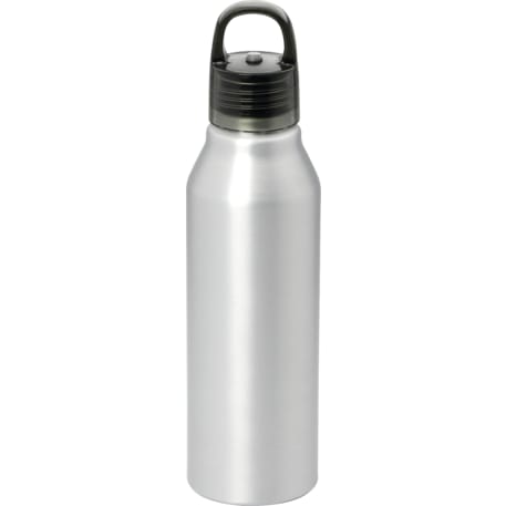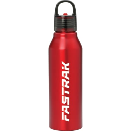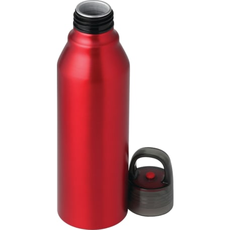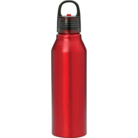 The Crescent 27oz Aluminum Sports Bottle features single wall construction with a screw-on, spill-resistant translucent lid with color pop feature inside the lid. Easy to carry. Hand wash only and follow any included care guidelines.