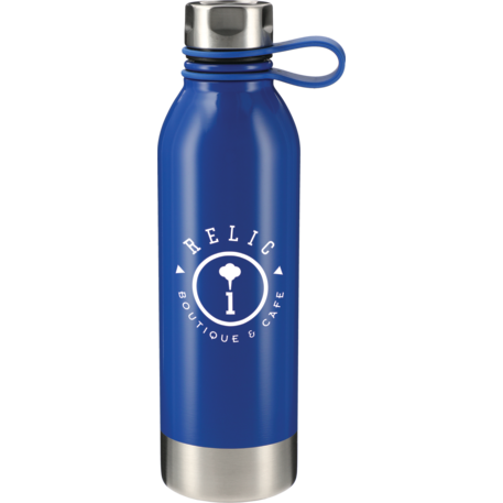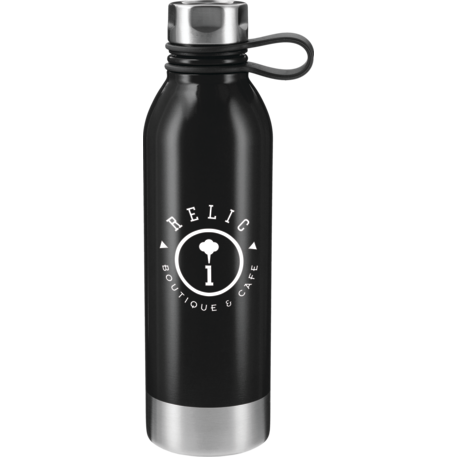 The Perth 25oz Stainless Sports Bottle features single-wall construction and stainless steel screw-on lid with comfort handling loop. Hand wash only and follow any included care guidelines.