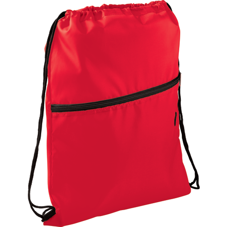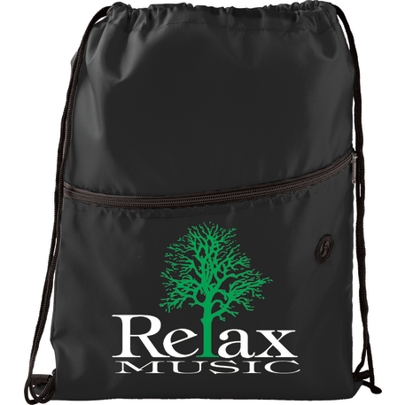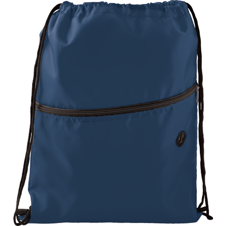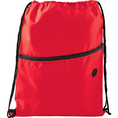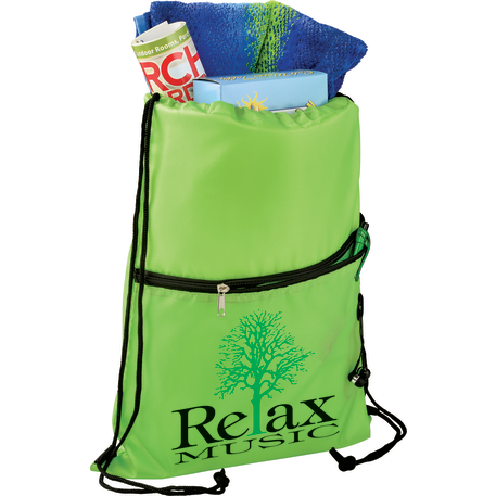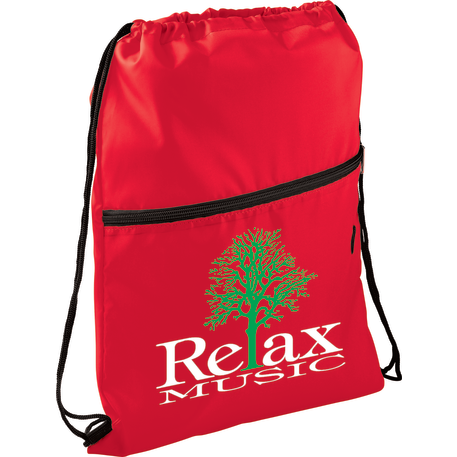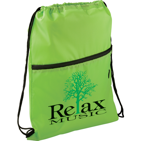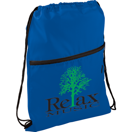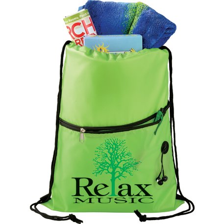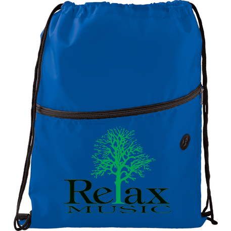 The Insulated Zippered Drawstring Bag has an open insulated main compartment with cinching closure that's perfect for any event. Also features a front zippered slash pocket with a handy ear bud port.