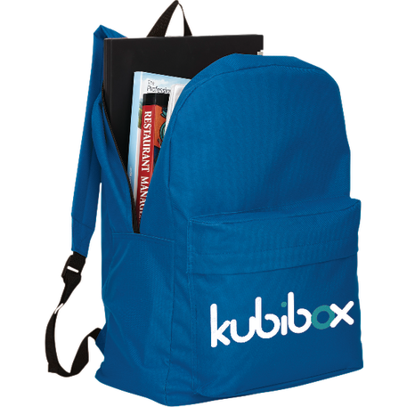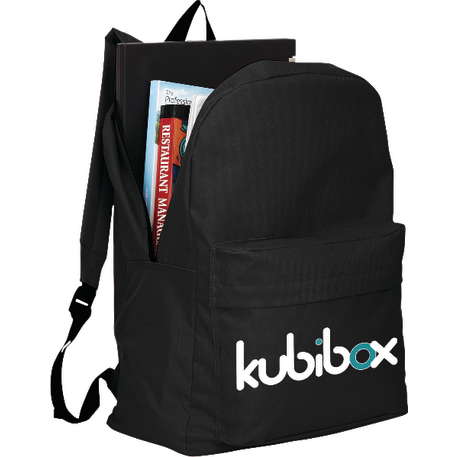 The Buddy Budget 15" Backpack has a zippered main compartment and features a padded laptop compartment that holds most 15 inch laptop computers. With a large gusseted zippered front pocket with protective flap it also has adjustable reinforced padded shoulder straps and a top carry handle.