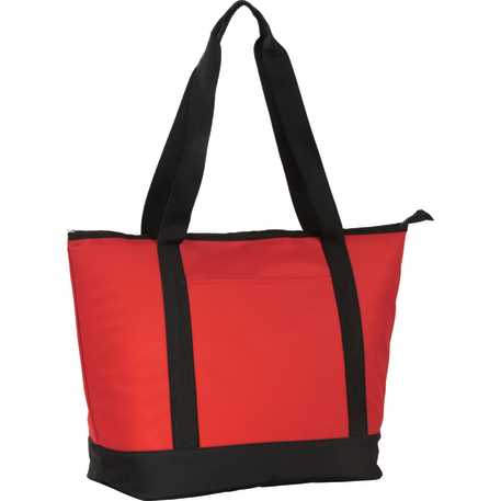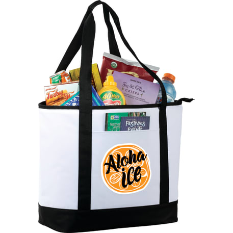 The Stay Cool Cooler is the perfect cooler for large events. Large zippered and insulated PEVA main compartment allows you to pack everything you need and then some! Front slash pocket and 31" handles allow for easy and comfortable transportation.