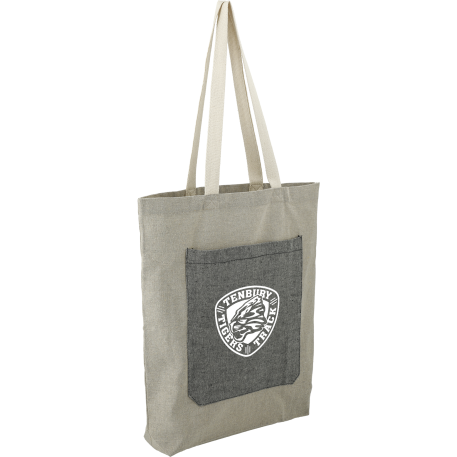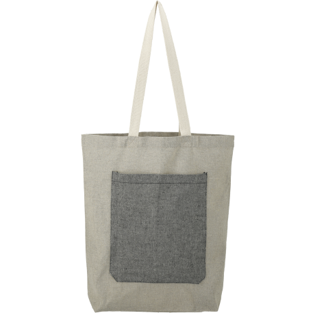 The Recycled Cotton Pocket Tote is made from pre-consumer recycled cotton. This tote features double handles, a front slash pocket and an open main compartment. Through a partnership with 1% For The Planet, one percent of sales of this and all EcoSmart products will be donated to nonprofits dedicated to protecting the planet.
