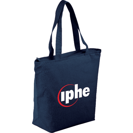 The Maine 8oz Cotton Canvas Zippered Tote features a zippered main compartment with double 19 inch handles.