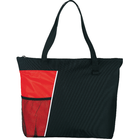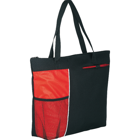 The Touch Base Convention Tote's zippered main compartment has double 20 inch handles a front mesh pocket and a front pen loop.