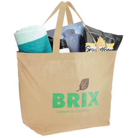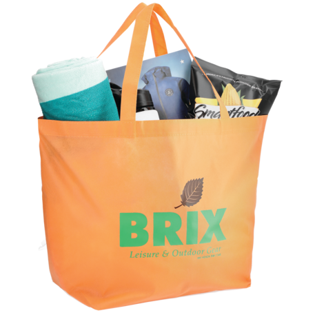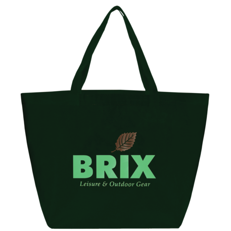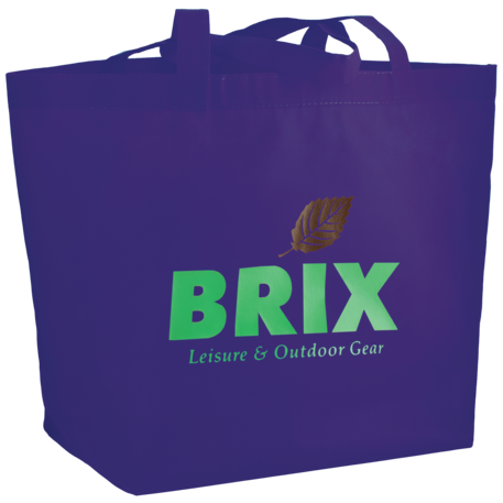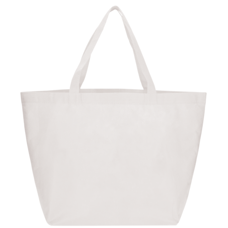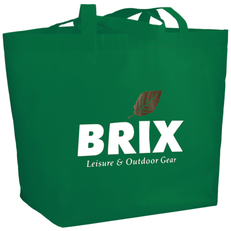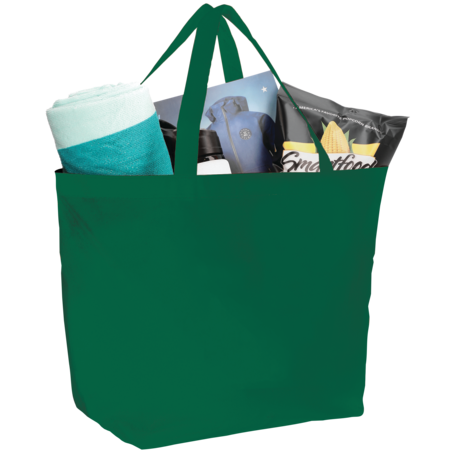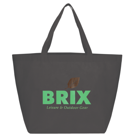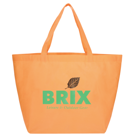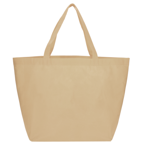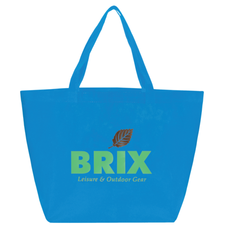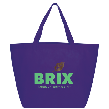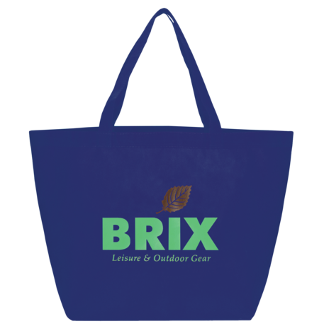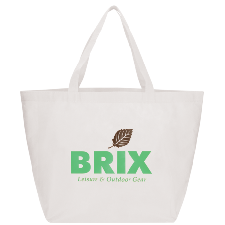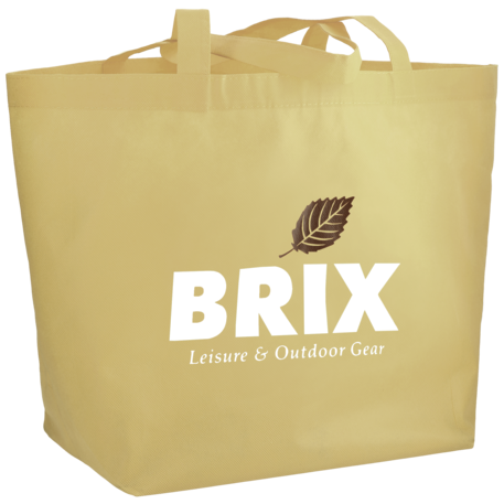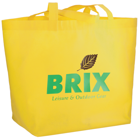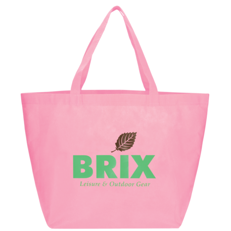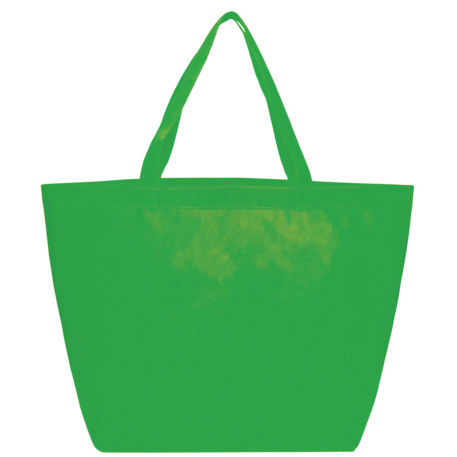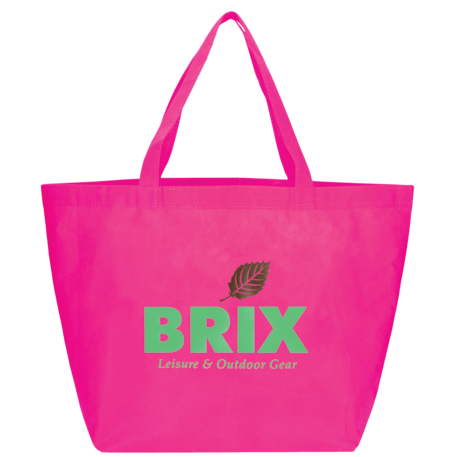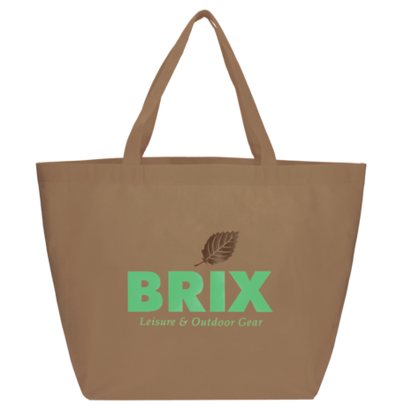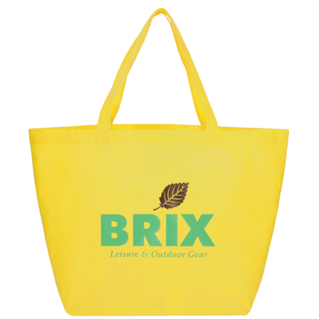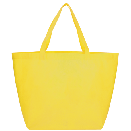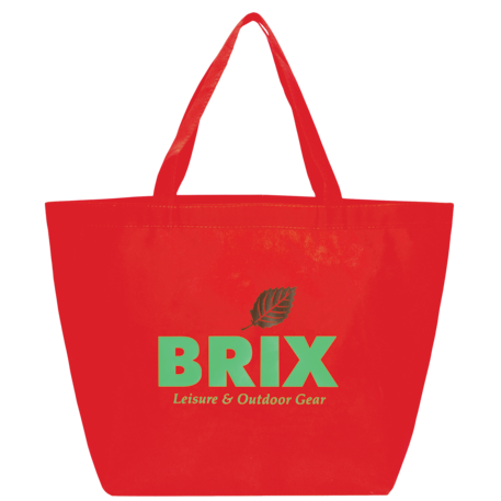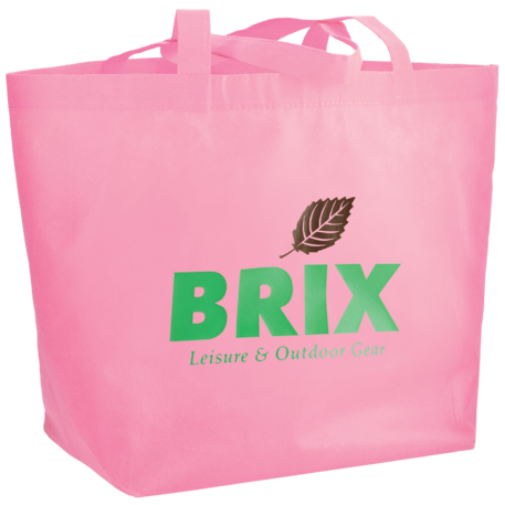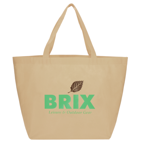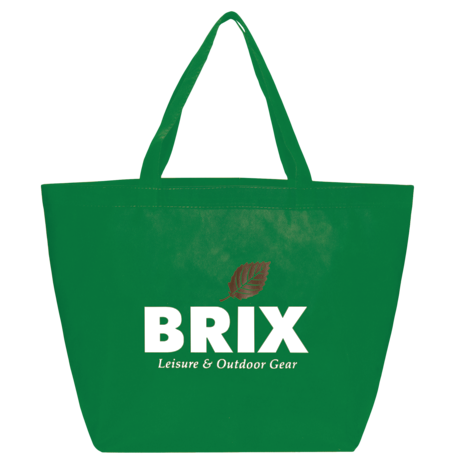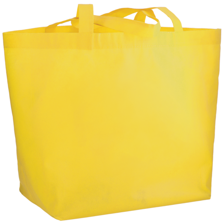 The YaYa Budget Non-Woven Shopper Tote has a large open main compartment with double 20 inch reinforced handles. It's completely reusable and a great alternative to plastic bags. Gusset & Handle Decorating does not qualify for one day turn. Bag is flared at the top and 19.5" wide when laid flat or when not fully stuffed. Bottom is 12" in width or when bag is fully stuffed. Polypropylene is recyclable with #5 plastics please check with your local municipalities for specific rules and regulations.