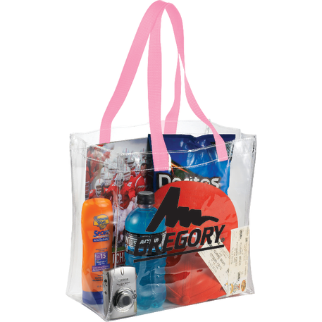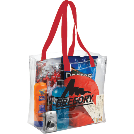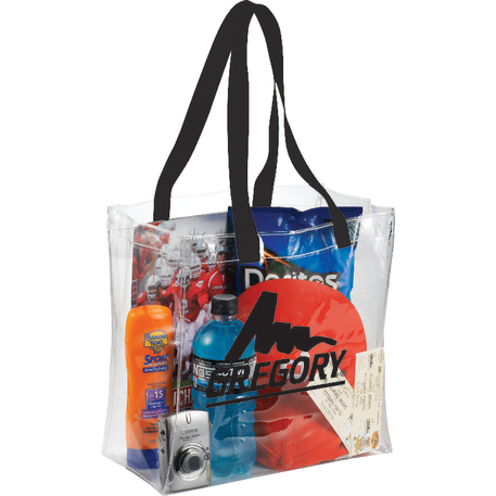 The Rally Clear Stadium Tote's clear material makes this bag perfect for stadium, event, workplace and other safety purposes. The open main compartment includes double 21.5 inch webbing handles. Sizing applicable for NFL stadiums.