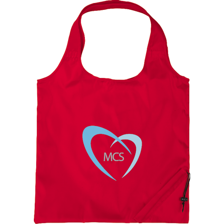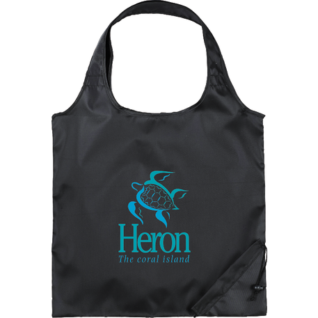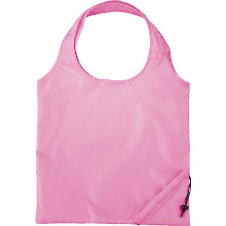 The Bungalow Foldaway Shopper Tote has an open main compartment with double handles and a unique fold-away function that gathers into a corner with drawstring closure.