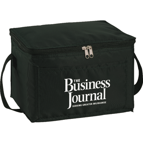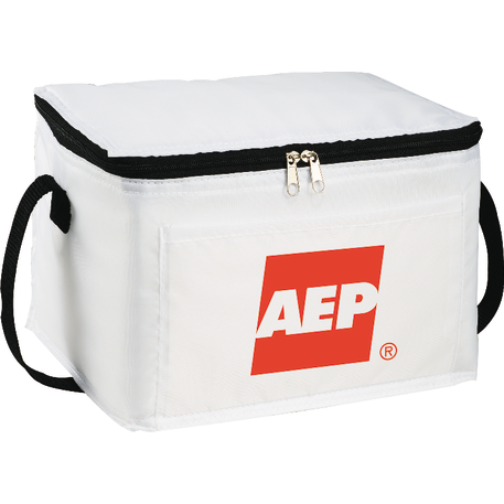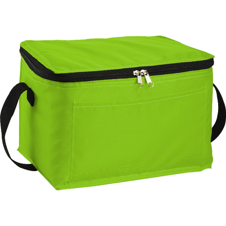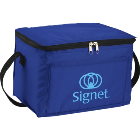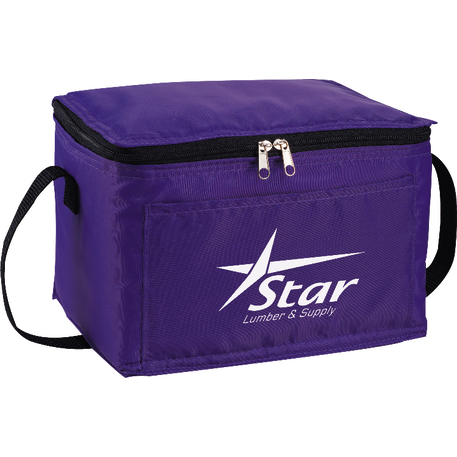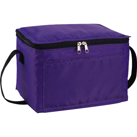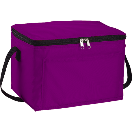 The Spectrum Budget 6-Can Lunch Cooler has PEVA insulation, a zippered main compartment, an open front pocket and 21" handle.