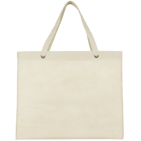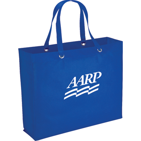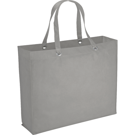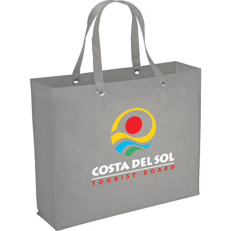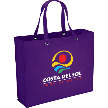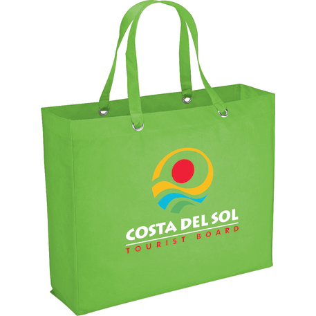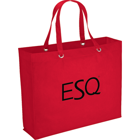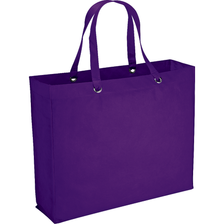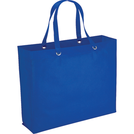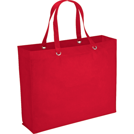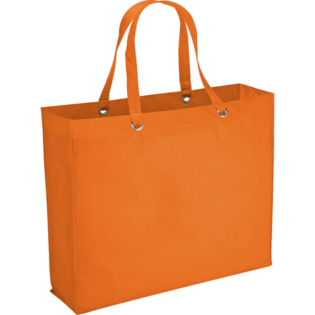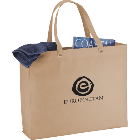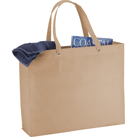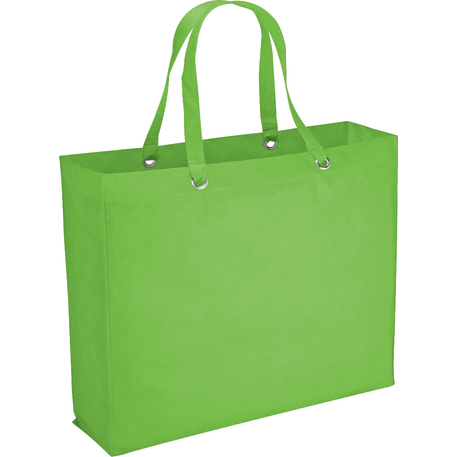 The Oak Non-Woven Shopper Tote has an open main compartment with double 23 inch handles reinforced with metal grommets. Completely reusable it's a great alternative to plastic bags.
