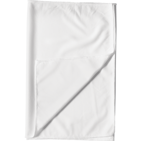 The Alpha Fitness Cooling Towel is a soft, lightweight and comfortable polyester towel that features a super absorbent material that provides a cooling feature when completely saturated. The open dimensions are 12" x 31.5". Can be worn as a face mask or bandana.