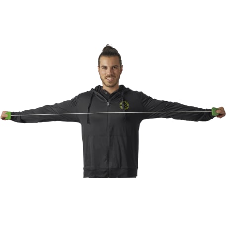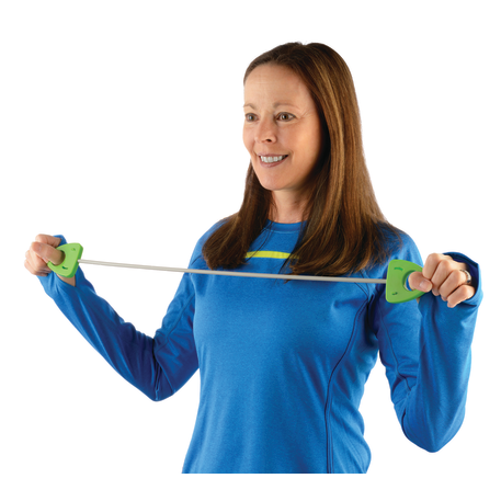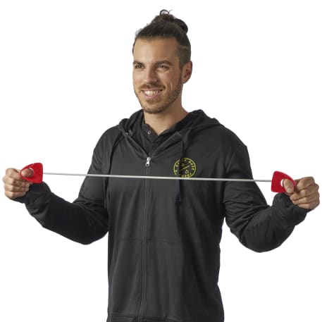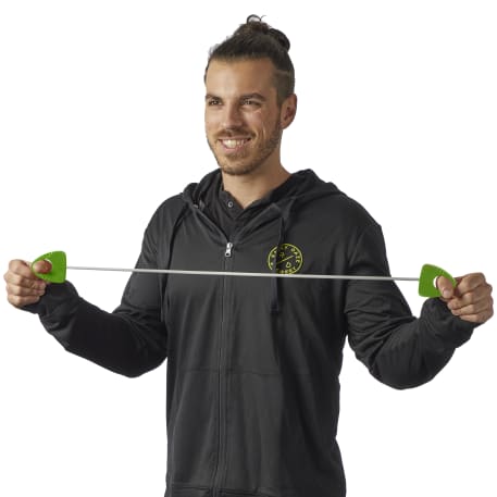 The Yoga Stretch Band is a work out accessory with two handles with a locking feature on the handle for easy storage.