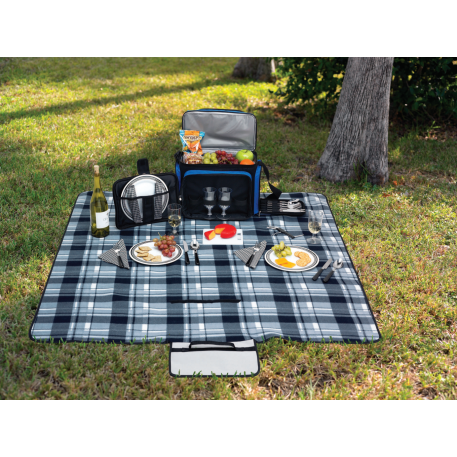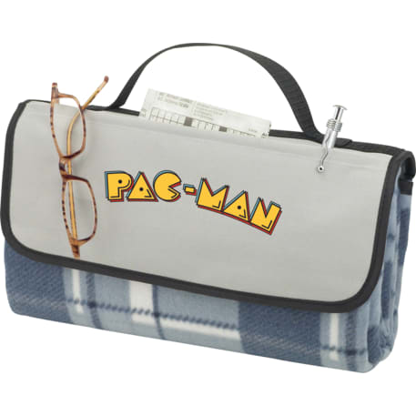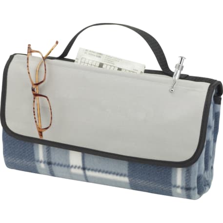 The Park Fleece Blanket has a foam lining and a water-resistant PVC backing with a hook and loop closure. There's also a front pocket on the flap and an easy carry handle. Blanket measures 52" x 49" unfolded and 12" x 6.5" folded. Blanket weight is 650 grams. This blanket is spot clean only.