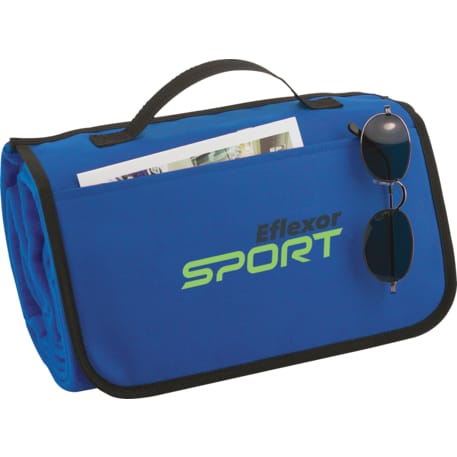 The Meadow Fleece Blanket includes a front pocket with a hook and loop closure and an easy carry handle. Blanket measures 54" x 46" unfolded and 11.3" x 7.2" folded. Blanket weight: 1.12 lbs or 500 grams.