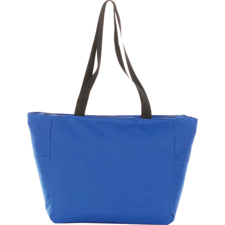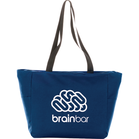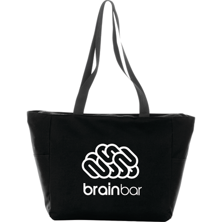 The Essential Zip Convention Tote has a zippered main compartment, dual side pockets and 12 inch drop handles. Disclaimer: There may be minor variations in color of the actual product due to the nature of the fabric dyes, weaves and printing.