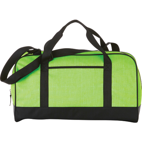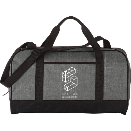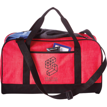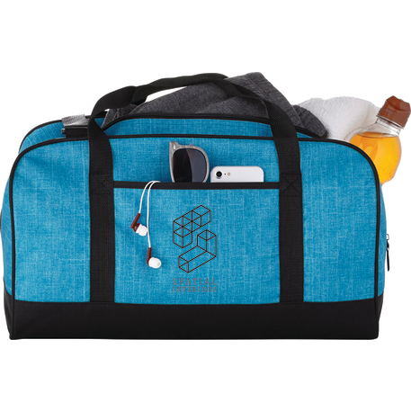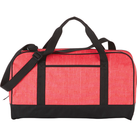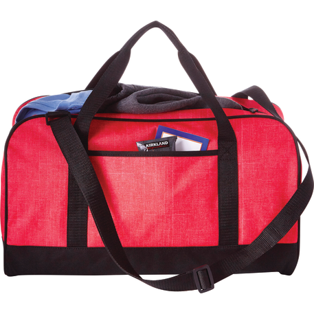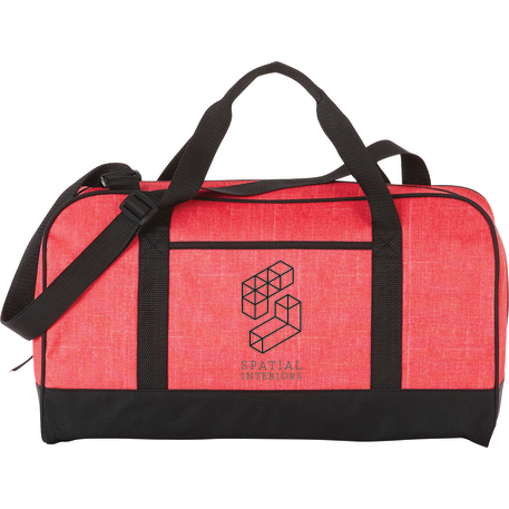 The Heather 18" Duffel Bag has a zippered main compartment and an open front pocket, plus an adjustable shoulder strap and dual carry handles. Disclaimer: There may be minor variations in color of the actual product due to the nature of the fabric dyes, weaves and printing.